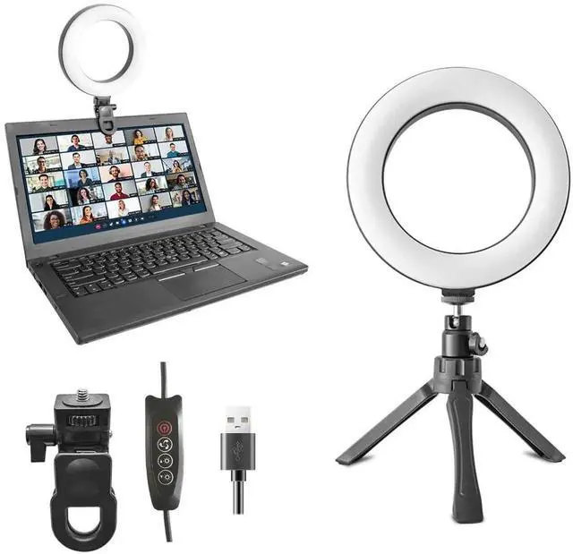 Complete Kit1 ring light, 1 × 5" tripod, 1 plastic clamp, 1 × 360° rotating pan basefull video-conference lighting set.