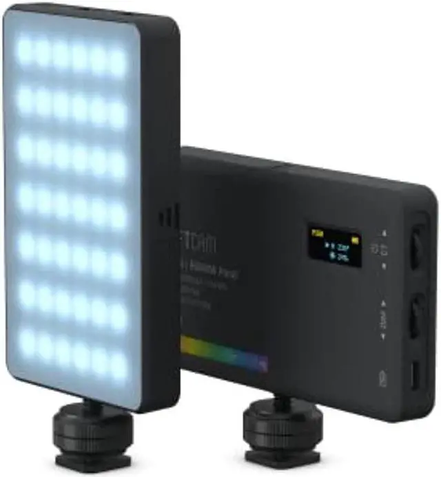 In CCT mode: 2500-9500k warmest to coolest light sets the right temperature for any scene. | CREATIVE PHOTOGRAPHY AT YOUR FINGERTIPS. Experiment with light painting in a full spectrum of colors, or use its two panels to contrast against eachother. | UP TO 15 HOURS ON A SINGLE CHARGE. Depending on brightness levels, each charge of the 3100mAh battery lasts between 2hrs - 15hrs. | WORKS WITH PROGRIP. The flexible and universal cold shoe mount can attach to ProGrip Starter Kit, DSLR camera's and tripod's, in portrait or landscape orientation.