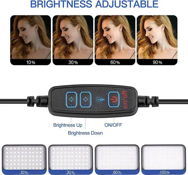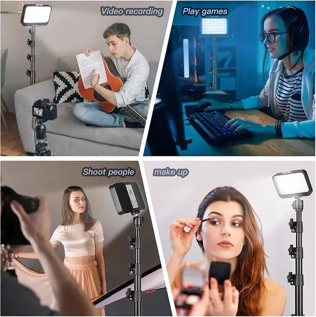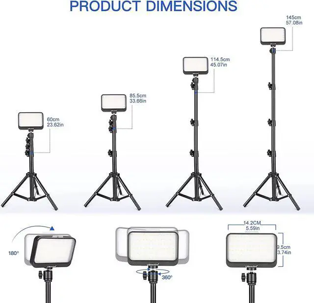 Video Lighting Kit: -The small LED panel light is equipped with a 1/4 universal ball head, which can adjust the panel 180°to to easily meet your different shooting angle requirements; cable control 10%-100% brightness level option. The up and down buttons can easily meet the needs of your shooting occasion.