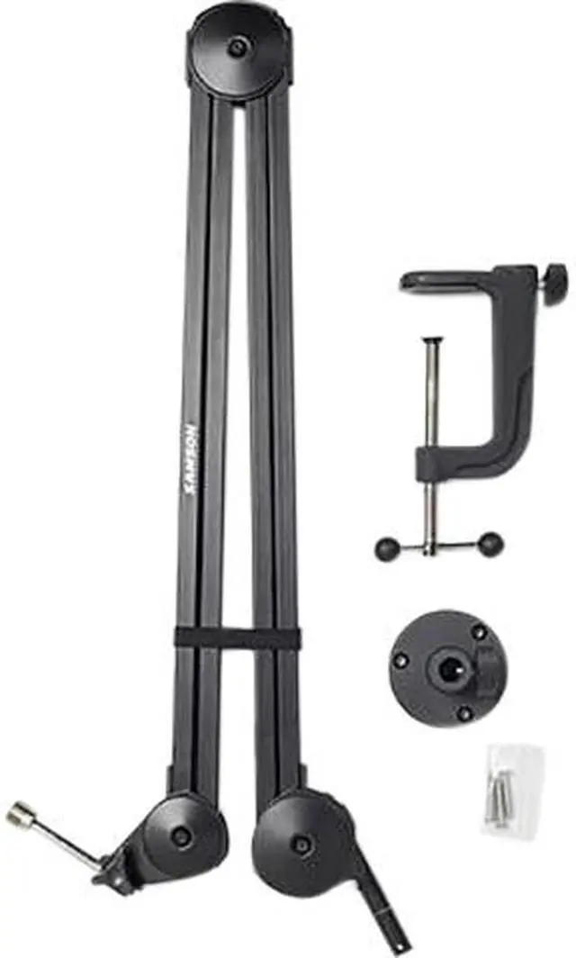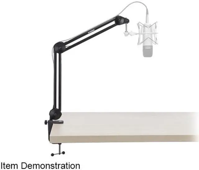 In combination with durable steel construction, the mic boom arm offers 5/8”-27 mic clip threading that can accommodate any mic weighing up to five pounds. FeaturesArticulating microphone boom armDurable steel constructionInternal springs for silent and effortless positioningMBA 38: 38 ” maximum arm reach5/8”-27 mic clip threading5lb maximum weight capacitySamson Item No. SAMBA38Get everything you need for desktop and mobile production right here at Sam Ash Music.