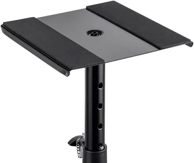 Monitor stands are key when setting up home studios. Not only are they useful for keeping your speakers secure, but they can make a huge difference in your sound, as monitor placement is critical for proper mixing. If you've ever used conventional, floor standing monitor stands, you know they need some floorspace, as support for a 4' stand will require ample footprint. Here's where the Stage Right desktop studio monitor stands come in. They provide the benefits of traditional monitor stands, without the required footprint. For instances where desk space is available, Stage Right desktop stands may be the ideal solution for your monitors.