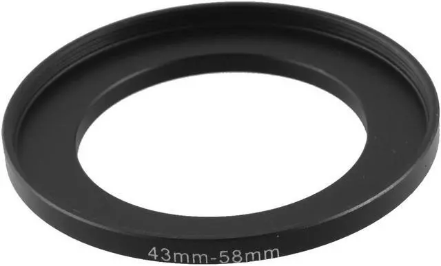 Adapter ring is suitable for filters, close-up lenses and other attachments to lenses with different filter thread sizes. The Bower 43-58mm Step-Up Adapter Ring easily screws onto the front of any 43mm Lens, and allows you to convert to the 58mm threads of accessory items (such as filters, hoods, flashes and lens converters).