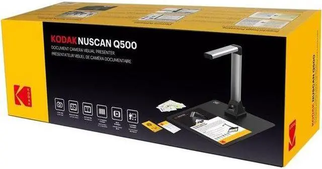 The KODAK NUSCAN Q500 Document Camera Visual Presenter is the ideal tool for presentations, image capturing and video recording. With this visual presenter and your computer, you can capture, using auto-focus, real-time images of 3D Objects, magazines, books, documents, pictures and business cards and present them through a monitor or projector. With the addition of fixed-focus, the unique down-facing lens makes repetitive image capturing, demonstrations, tutorials and lectures comfortable and simple. Along with these great features, you can use the included NUSCAN software with your NUSCAN Q500 to take snapshots or record videos of just about anything, edit images and videos with the advanced editing tools, plus enjoy the convenience of sharing.