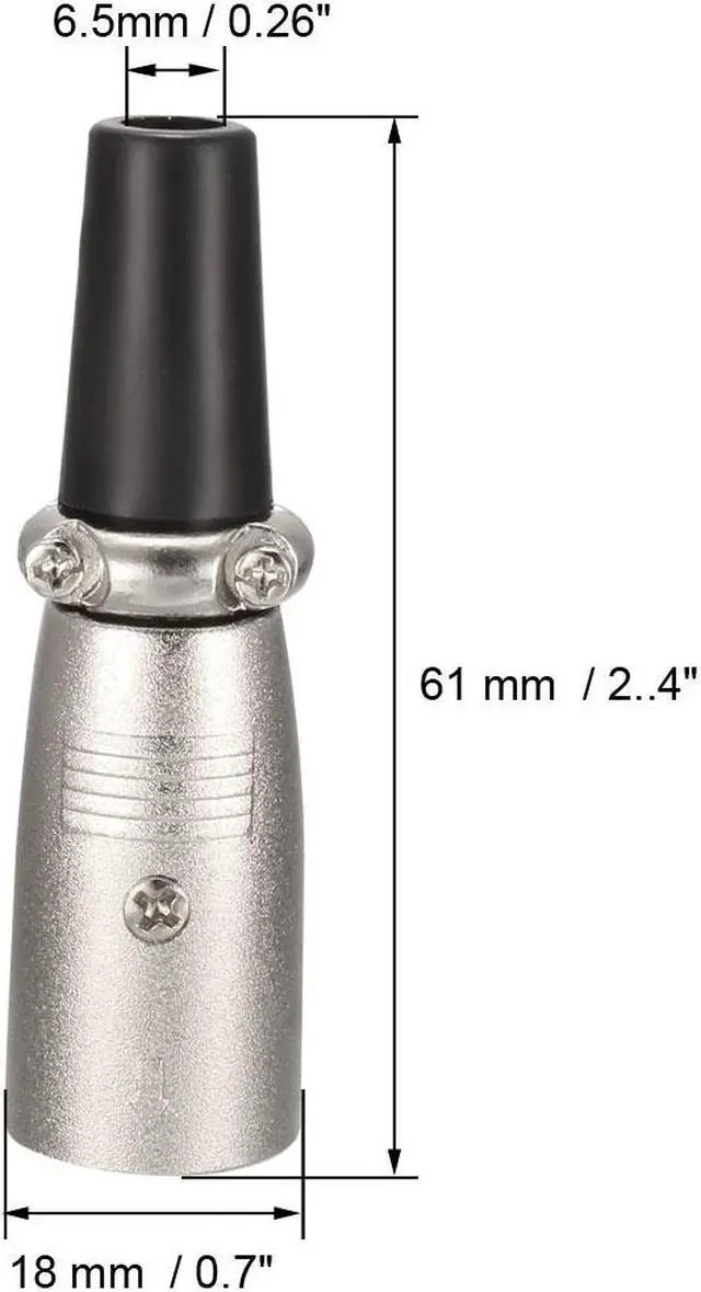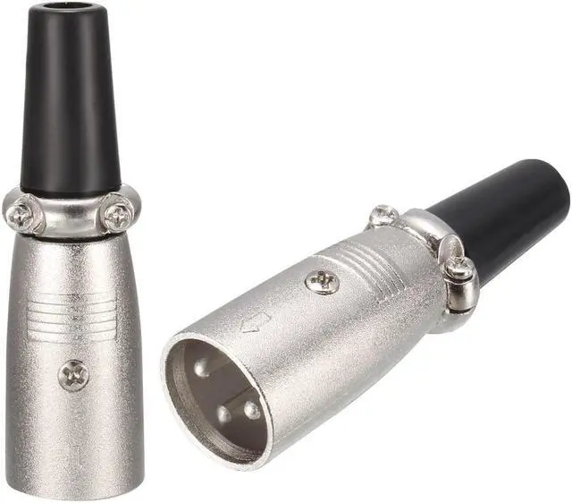 Application:Another one of those adapters that every audio geek needs to have in their toolbox. XLR Adapters for Pro Audio use. Great for mixers, microphones, amplifiers, EQ, rack gear, keyboards, guitars, electric piano, electric drums etc.KEY_TAB Specification:Product Name :XLR Male ConnectorColor :Silver Tone,BlackMaterial :Zinc Alloy,RubberUse Way : WiringContact Pin Hole Quantity :3 pinFit Wire Diameter : 6.5mm / 0.26"Total Size : 61 mm x 18 mm KEY_TAB / 2..4" x 0.7" KEY_TAB (L * D)KEY_TAB Package Included:2pcs x XLR Male ConnectorKEY_TAB