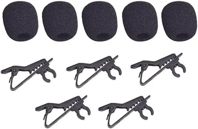 *****Lavalier Microphone Lapel Clip and Foam Windscreen Cover 5 Packs Lavalier Microphone Replacement Metal Tie Collar Clip for Omnidirectional Condenser Mic Boya Saramonic Maono