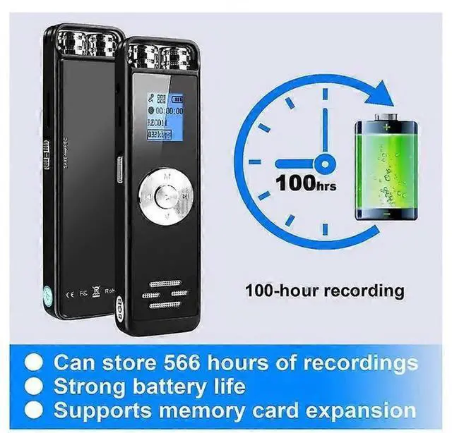 **Long Battery Life**: Up to 100 hours continuous recording and 365 days standby on a single USB recharge.