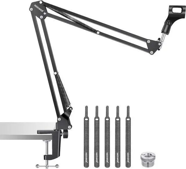 Cable Straps & Solid Base The five cable straps help organize your microphone cable and make the boom arm look neat. The base connector is solid for durable and reliable holding