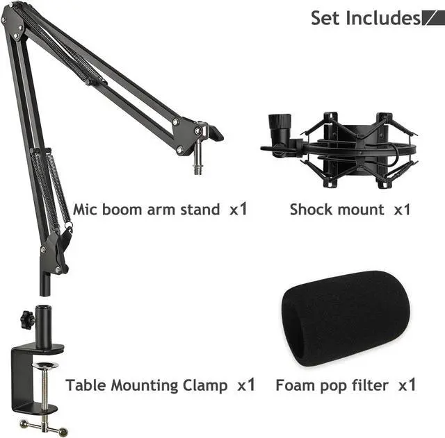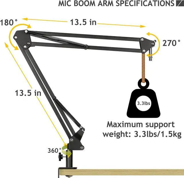 Heavy Duty Boom Arm: The adjustable microphone arm stand is made of durable steel for heavy duty carry.