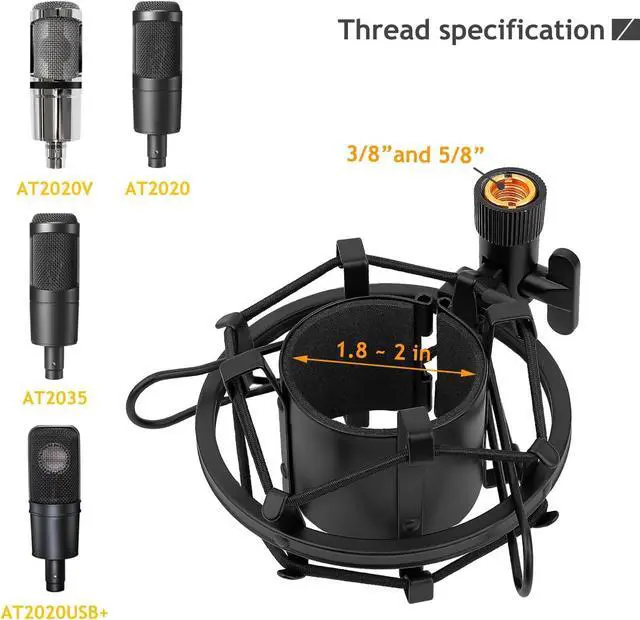 High Quality Shock Mount: The shockmount can reduce unwanted vibration noises. Like floor tapping, desk bumping. To improve audio recording quality. With a 3/8"-5/8" screw adapter. Perfectly match the most of boom arm and microphone stands.