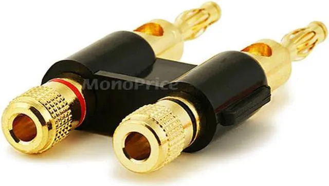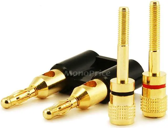 Features: * Can accept bare wire, spades, or other banana plugs* Can accept 12 to 18 AWG speaker wires* Color coded black/red rings for maintaining proper polarity* Secure, positive contact with binding posts* Corrosion resistant, 24K gold plated finish* Copper body construction and ferromanganese tips* Black plastic binding yoke*** 30-day easy returns. No restocking fee. Free lifetime technical support. 1 year warranty. ***