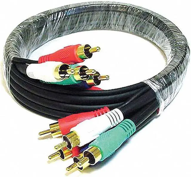 Component video, also known as YPbPr, produces the highest quality analog video. This cable includes conductors for each of the three video channels (Red, Green, Blue) as well as the two stereo audio channels (Red and White) and is ideal for connecting the analog output of DVD players and VCRs to the corresponding inputs on your TV. The video conductors in this cable are made from RG-59 coaxial cable, with 22AWG cores and shielding to prevent EMI and RFI interference from disturbing your video signal. The audio lines utilize 27AWG stranded conductors.