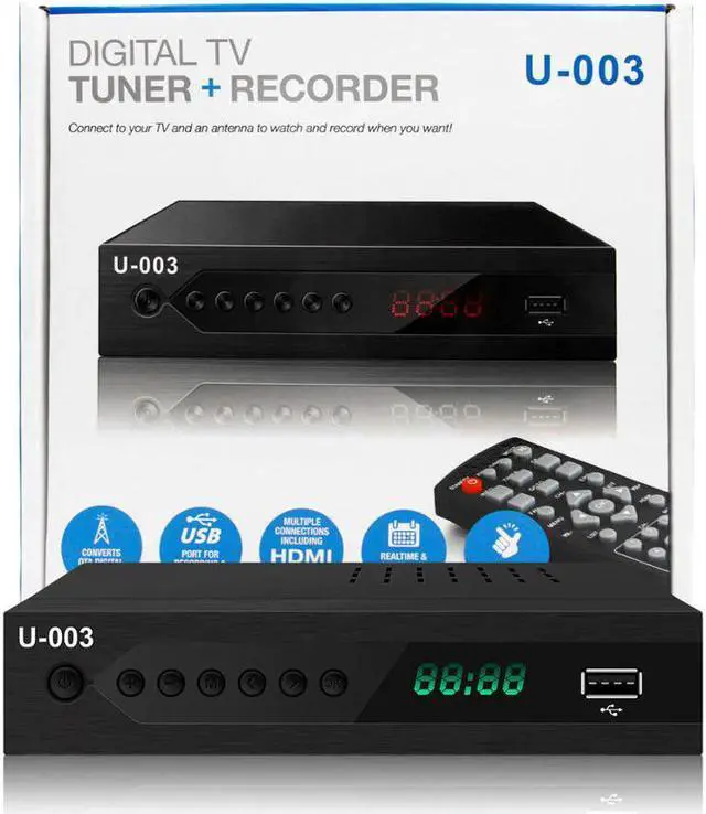 U-003 allows you to record TV show in USB 2.5" / 3.5" external hard drive and You can select view photos, play MP3 music files and view movie files, and recorded TV programs from your USB storage device.