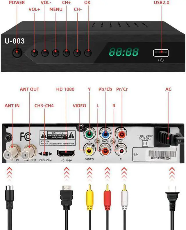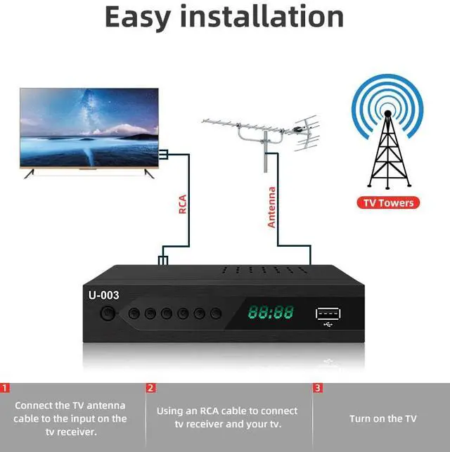 U-003 ATSC digital TV converter box receives over-the-air ATSC digital TV broadcast to your Analog and Digital TV, Projector, and Computer Monitor, 4000+ channels for TV&Radio.