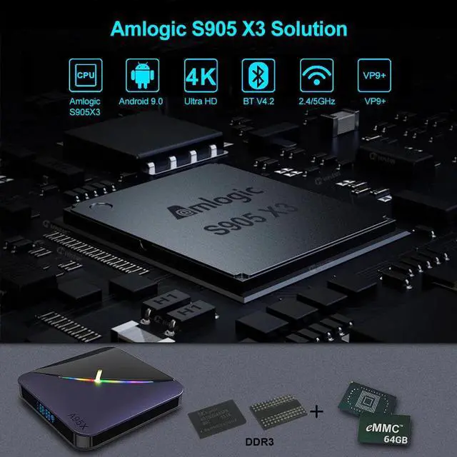 CPU: Amlogic S905X3 Quad Core ARM Cortex A55;