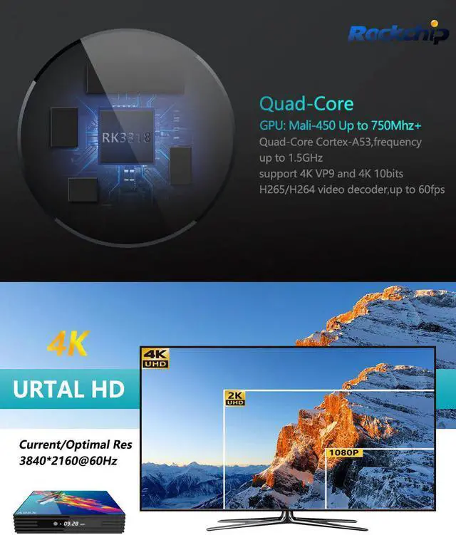 CPU: quad-core Cortex-A53 (rk3318) 1.1 ghz