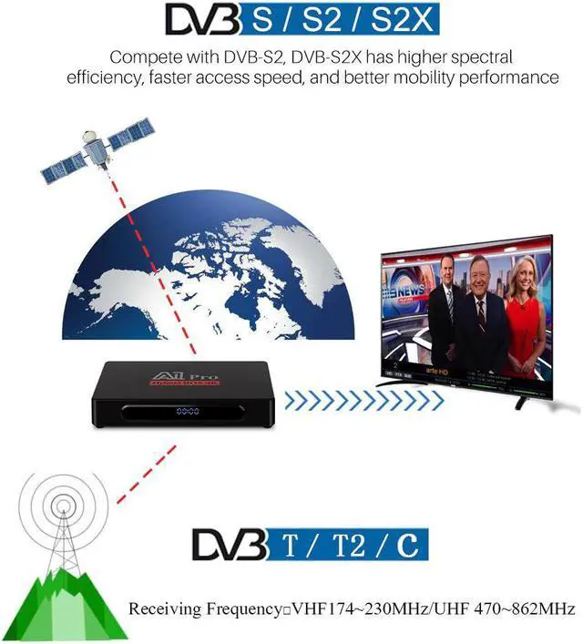 9.0 TV Box 4K Amlogic S905D DVB-C DVB-T2 Digital TV Tuner DVB T2 Combo FTA H.265 HEVC DVB-S2 Satellite TV Receiver HD