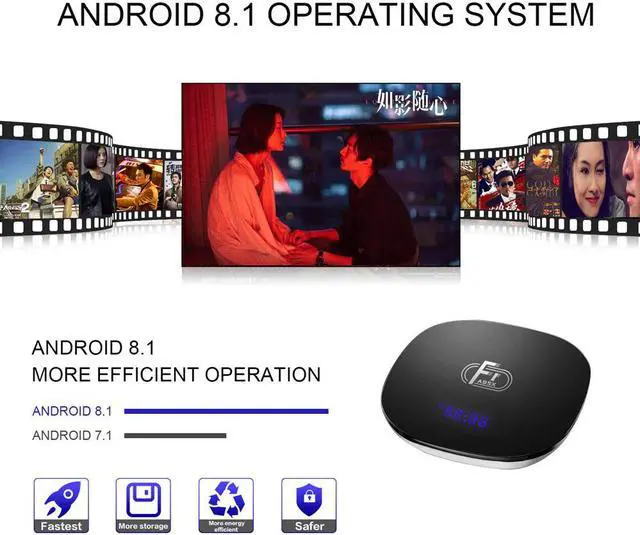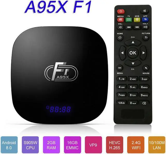 F1 Smart Android TV Box is your great choice and can change your traditional TV & LCD monitor into a multimedia center by connecting the Internet (Via WiFi or RJ45). This smart Android TV Box will bring you much fun and convenience with its powerful feature: Android 8.1, Amlogic S905W Quad-Core CPU, Mali-450 GPU, 2GB RAM and 16GB ROM, H.265 video hardware decoding, 2.4G WiFi, 100M LAN connection, LED Display and remote control.