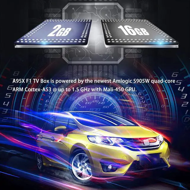 Powered by Amlogic S905W Quad core ARM Cortex-A53 CPU, F1 is a HD media player with Mali-450 penta-core, up to 750MHz GPU.