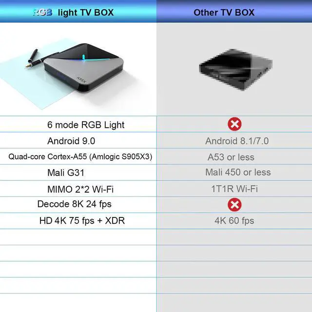 Powered by Amlogic S905X3 64-bit Quad-core ARM Cortex A55 CPU with upgraded performance, more powerful than S905X2. Support 8K*4K 24fps, 4K*2K 75fps.