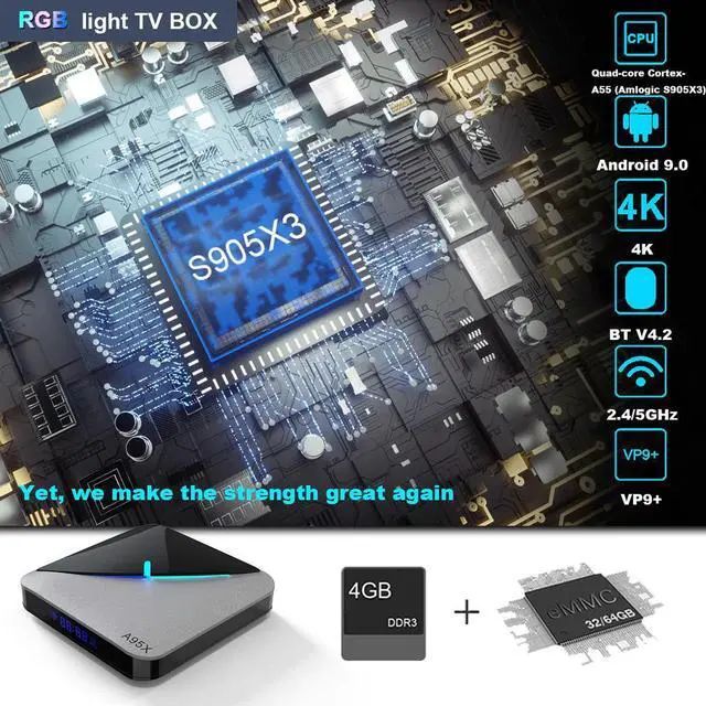 CPU: Amlogic S905X3 64-bit Quad core ARM Cortex-A55 CPU