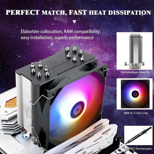 AGHP technique6x6mm heat pipes apply AGHP technique, Solve the Inverse gravity effect caused by vertical / horizontal orientation, cpu cooler TDP is 245W.
