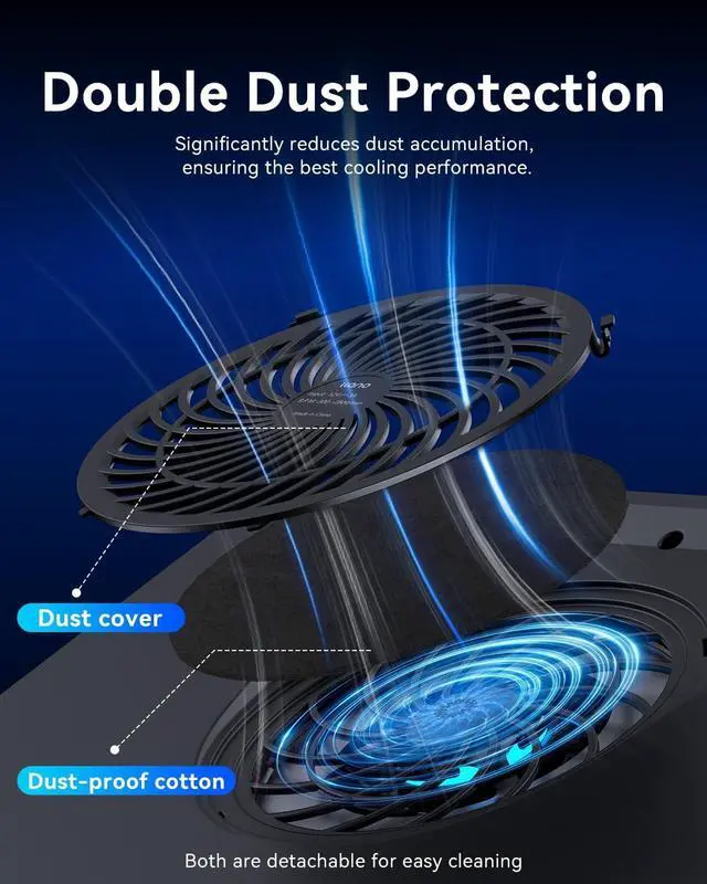 [New Upgraded Version, Coooling Gets Quiet and Quicker]Equipped with a 5.5 inch (14CM) large-diameter turbo booster external fan guarantees a remarkable 44 (111) temperature drop (CPU+GPU) in just 90 seconds, combined sealed foam, ensures perfect cooling effect, whether you're gaming or working on high-intensity tasks, experience uninterrupted, rapid cooling without the hassle of delays or screen flickers
