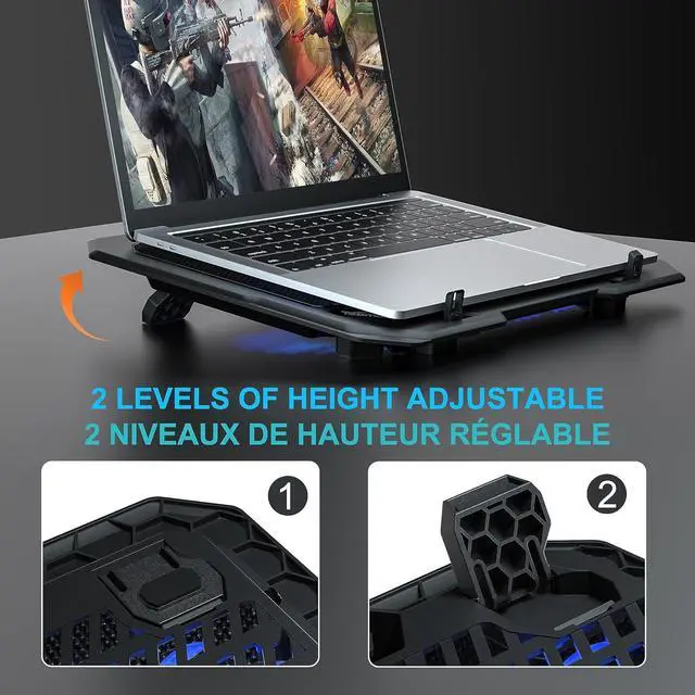 Ergonomic ComfortLaptop cooler stand have 2 adjustable height settings for more comfortable typing and viewing experience when working or playing games.