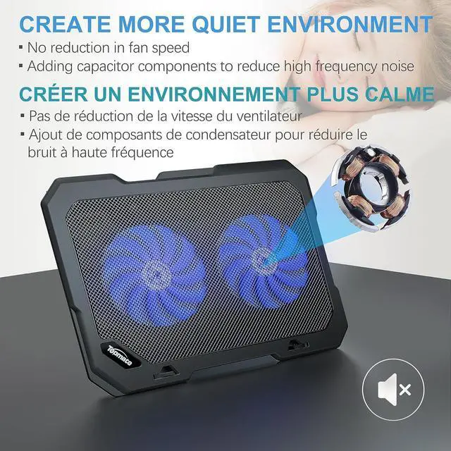 Quiet FansThe laptop fan has two 4.93 inch quiet fans which will not disturb you during heat dissipation.