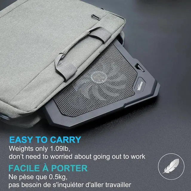 Easy to CarryLaptop cooling pad weighs only 1.09 lb, making it super lightweight. It can be completely flat and put into backpack or briefcase easily.