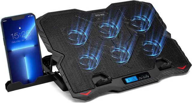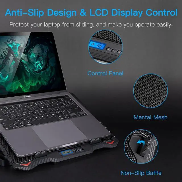 Dual USB Ports & LCD DisplayThis laptop fan cooling pad has built-in two USB ports, which allow you to connect to other USBs and has an LCD display function, you can monitor the speed of 6 fans in real time. The gaming laptop cooling pad is made of nylon braided wire, which is cooler and more durable, and it is easy to put in the storage box.
