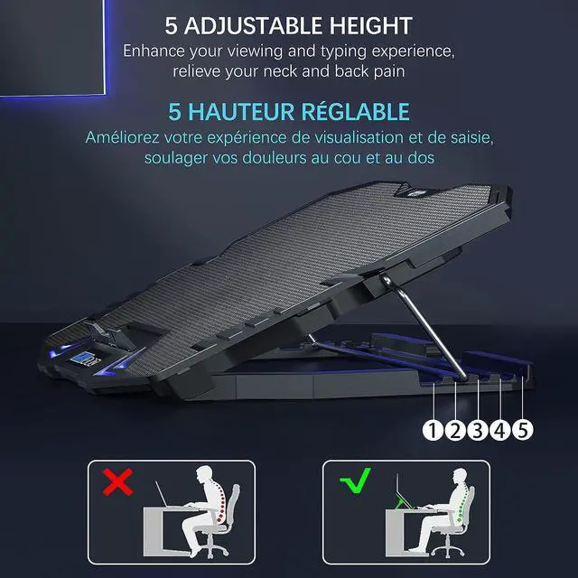2. The Notebook cooler has a unique design and adjustable tilting, It's nice that the angle is adjustable to 4 different positions before the 5th flat option, so it can truly suit your needs