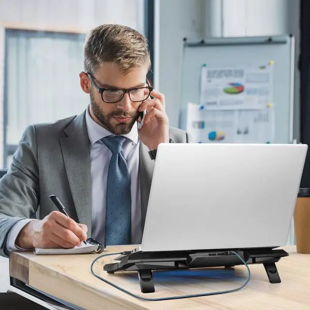 6 Super Cooling & Quiet FansLaptop cooling pad has 6 noise-free fans, with blue LED, not only beautiful but also show fan is working. Very quiet rapid cooling effect prevents your laptop from overheating under different use situation.