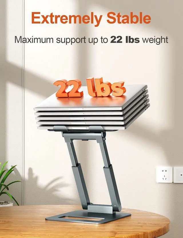 Exceptionally Sturdy: Our tall laptop riser is able to support up to 44lbs weight, the constructed material is metal so that is super sturdy with little-to-no wobble even at maximum extension, the two pivot joints make the standing desk two times stronger than a single pivot joint desktop laptop stand.