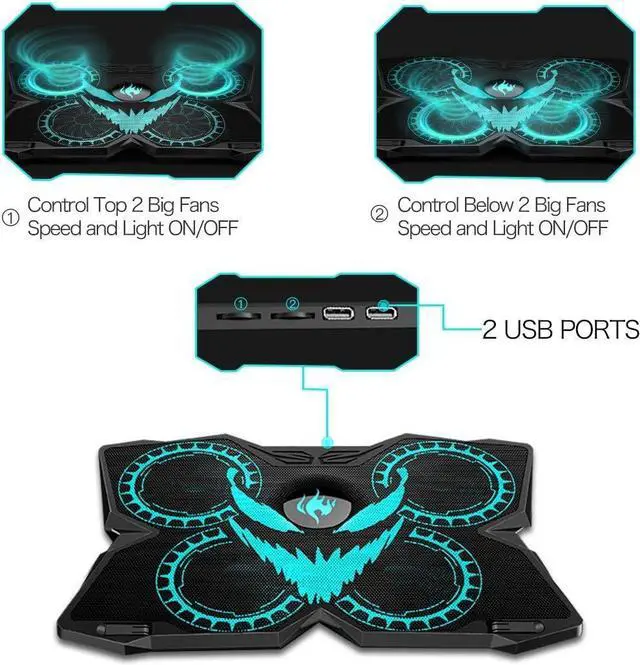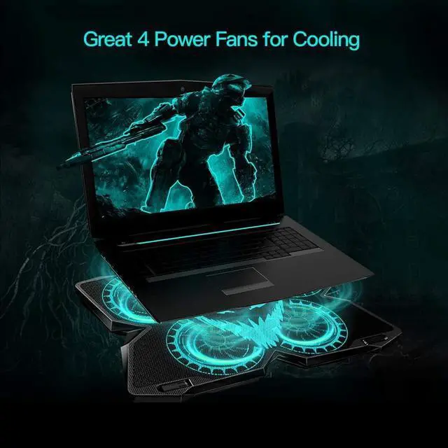 3 Quiet Cooling Fans & Adjust Fan Speed Laptop cooling pad with 3 Big Quiet fans, very quiet rapid cooling effect prevents your laptop from overheating under different use situation, switch control fan speed from 0 to max freely.