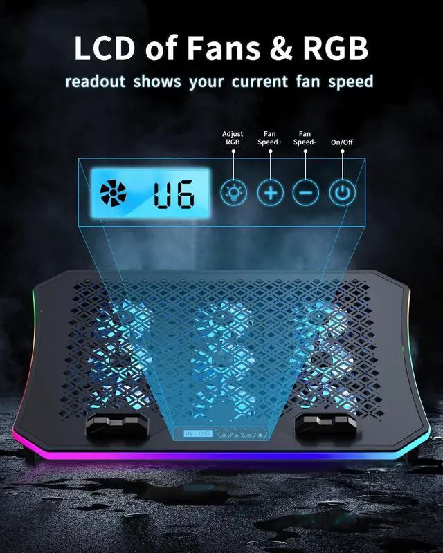 LCD Display: The LCD of KeiBn cooler pad readout shows your current fan speed. simple and intuitive. you can easily control the RGB lights and fan speed by touching the buttons.