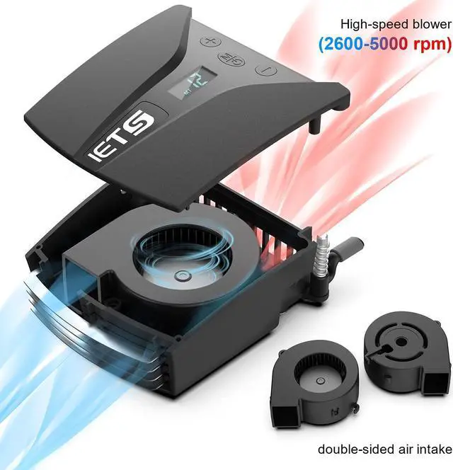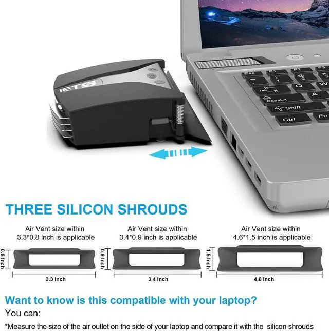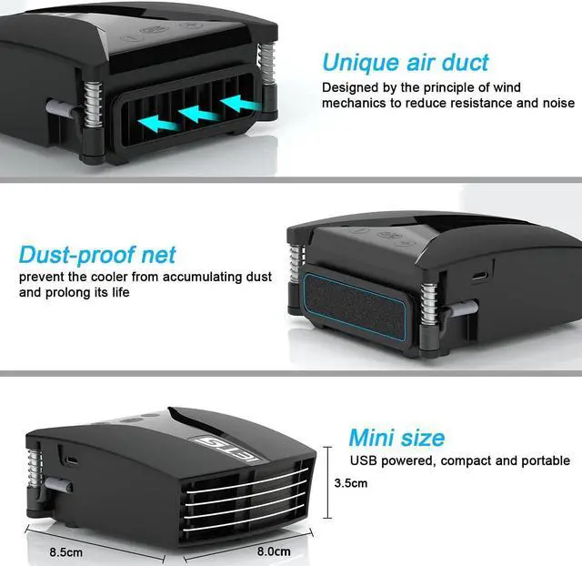 Three cores: High-speed blower(2600-5000Rpm), Tight silicon shroud (Available in three sizes), and Low-resistance air duct, these three designs create a Rapid Cooling vacuum laptop cooler
