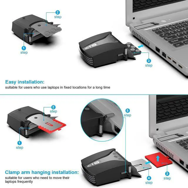 Retractable clip arm: It can make the cooler and the laptop firmly combined, and allows the cooler to move with the laptop
