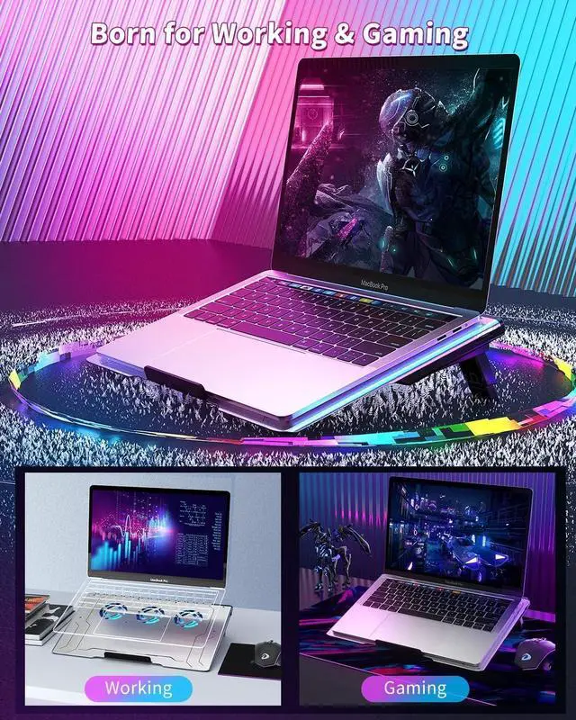 Use as a Laptop Stand for desk: Simply adjust the comfortable height of cooling pad when playing games, watch video or working for long time use indoor or outdoor. Thick anti-slip silicone baffle and bottom prevent your laptop from falling off, keep stable.