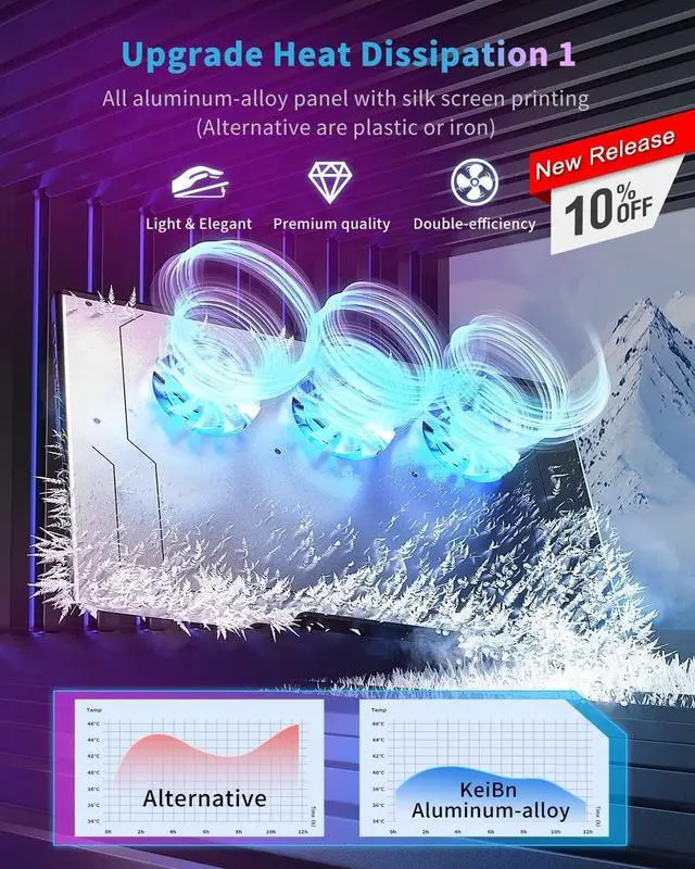 New Heat Dissipation Experience: Unlike traditional plastic or iron metal on market, Aluminum-alloy material has natural Low temperature, fast heat-conducting property, The all aluminum-alloy cooling panel provide a better heat dissipation for laptop. Portable lightweight in elegant young appearance. (Weight: 1.54 lb, Size: 16.54 x 10.63 x 1.18 inches)