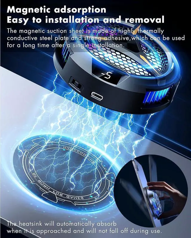 MAGNETIC SUCTION DESIGN The magnetic suction sheet consists of a highly thermally conductive steel plate and a strong adhesive, which can be used for a long time after a single installation. The heatsink will automatically absorb when it is close to it and will not fall off during use.