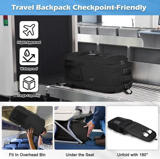 Insulated Compartment & TSA Checkpoint-FreeThe lining of the meal compartment comes with seamless aluminum material and middle polymer cotton, which is totally leakproof and has excellent insulated capability. The travel backpack for women men can be completely unfolded which saves your time of airport security check. The dimension of this carry on laptop backpack cooler is about 34*20*49 cm that is decent for fitting in overhead bin and under the seat.