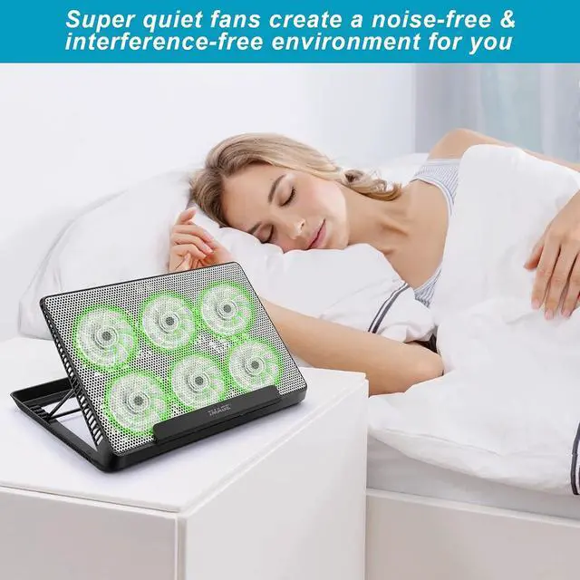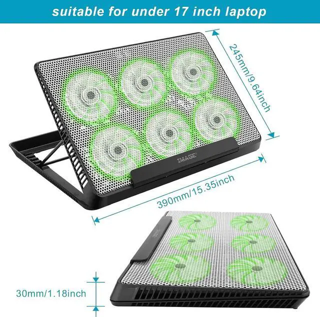 6 COOLING FANS WITH GREEN LED LIGHTS: There are 6 high-speed quiet cooling fans with green LED lights in total. It rapidly and uniformly increases air ventilation without generating any noise. Whats more, it reduces the temperature of laptop and makes the appearance look a bit more snappy.