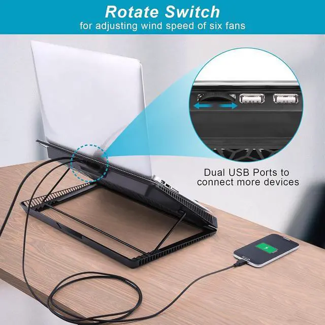 ADJUSTABLE SPEED WITH USB FUNCTION: This cooling pad can be suited to different gears of fan speed. In this way, you can adjust the fan speed in accordance with your actual needs. It is equipped with two USB interfaces, which can help you connect other electronic devices to support data transmission and power supply.