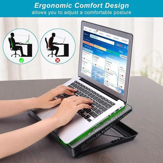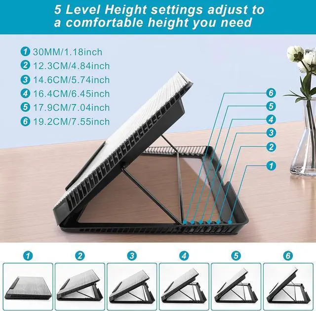 USER-FRIENDLY DESIGN: With a multi-angle feature of this amazing laptop cooling pad, it can be easily adjusted to different angles to satisfy your needs. Besides, we provide a baffle for you so that it can well prevent your notebook, kindle or other electronic equipment from falling down out of the blue.