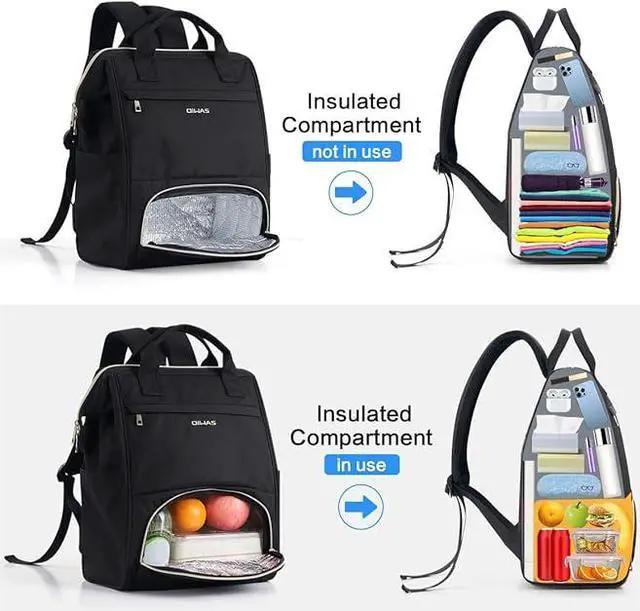 Insulated Lunch Bag Compartment - OIWAS lunch backpack has an insulated cooler compartment that keeps food and drinks cool or warm.