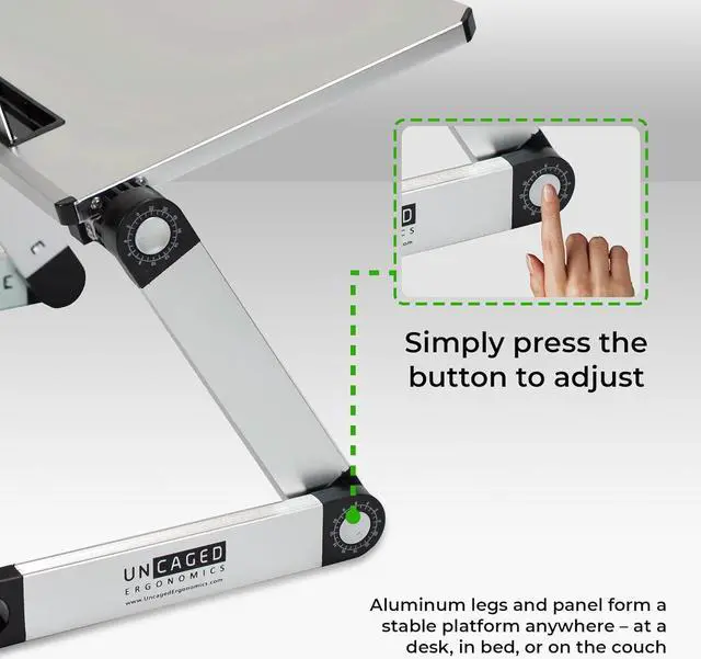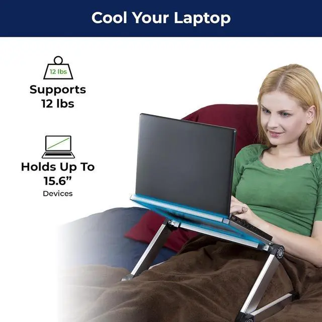 Adjustable Lap Desk for Laptop hold laptops hands-free on the couch or bed with this computer lap desk. The aluminum legs slip over your lap so you can stretch out and get comfortable.