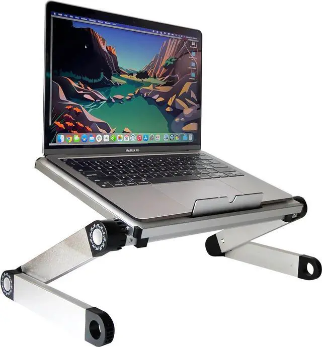 Laptop Cooling Stand the laptop stands smooth, brushed aluminum panel dissipates heat to cool laptops no fans needed! Save your legs from getting hot with this lap tray for laptops.