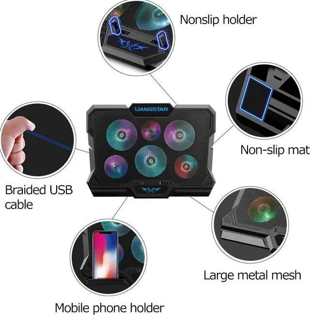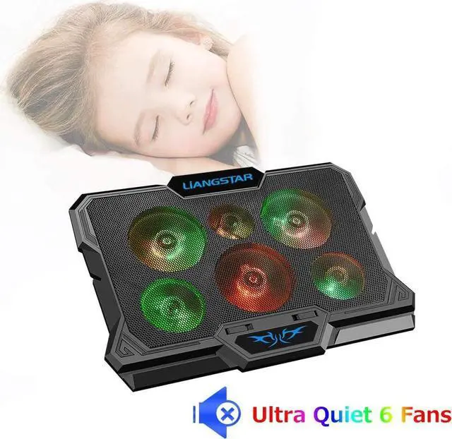 6 Super Quiet Fans & 7 Color LightLaptop cooling pad has 6 noise-free fans, with 7 changing light colors, not only beautiful but also show fan is working. Very quiet rapid cooling effect prevents your laptop from overheating under different use situation.