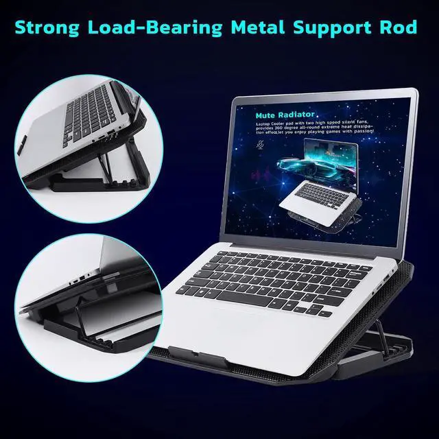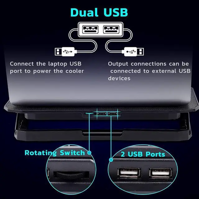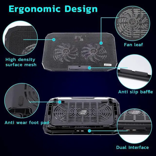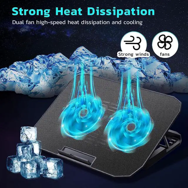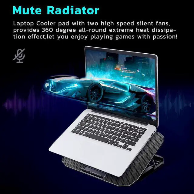 2-Core Deep Cooling2-Core Deep Cooling: Laptop Cooling Pad is with 2 high-speed silent turbo fans, provides excellent cooling effect, 1400+RMP motor super fans, optimized 12"- 16.5" laptop cooling effect. At the same time, The noise is only 26DB, very quiet.