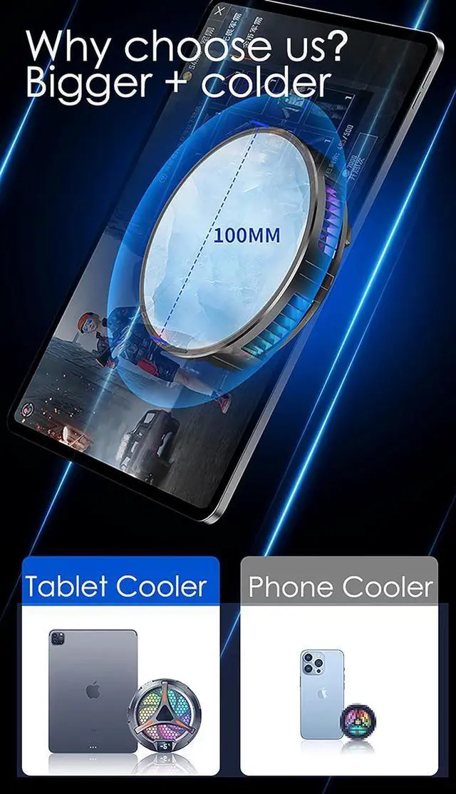 Temperature DisplayThe phone cooling fan is featuring a live temperature display, the Cellphone Radiator with surface pro tablet cooling fan s built for enthusiasts. Youll feel and see the performance boost.